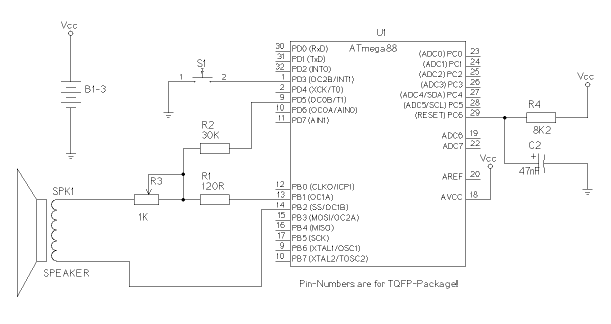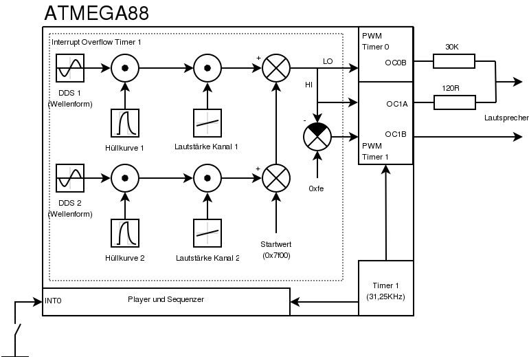 Kernstück des Ganzen ist ein ATmega8 oder 88, wobei letzterer eine geringere