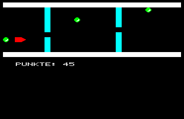 Gesteuert wird mit den Cursortasten auf- und abwärts, bei einer Kollision mit einer