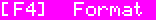 5.1 Die Belegung der FunktionstastenDie gerade aktive Funktion ist invertiert dargestellt, die Auswahl erfolgt über die Cursor-Hoch und Cursor-Runter Tasten. In der untersten Zeile stehen die möglichen Kommandos, die Farben entsprechen wieder den Tasten ESC und F1...F4 und haben folgende Funktionen: