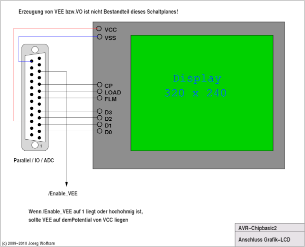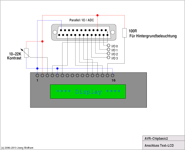 40 Zeichen. Allerdings ist die Darstellung nur monochrom (grün auf schwarz) möglich, die Ausgabepins
