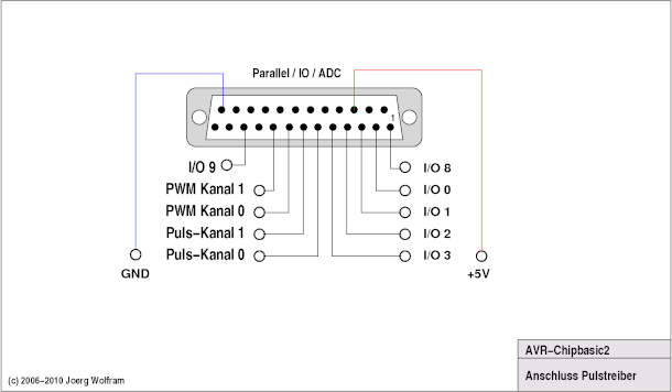 Die 2 PWM-Kanäle liegen an den Leitungen D6 und D7 an, die beiden Pulskanäle an den Datenleitungen D4 und D5.