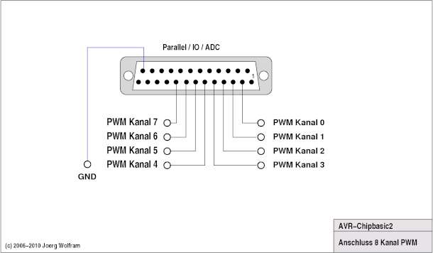 Die 8 PWM-Kanäle liegen an den Datenbits D0...D7 an.