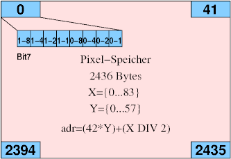 Die Pixelbytes sind von links nach rechts sowie von oben nach unten organisiert. Innerhalb des Bytes entspricht