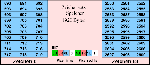 links, ist Bit 6 "0", hat das nächste Pixeldie gleiche Farbe, bei einer "1" ändert sie sich.