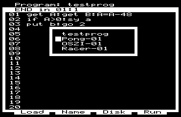 Cursortasten ausgewählt werden. Mit der Taste L wird das Programm in den Editor geladen, mit