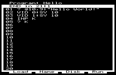 Die Programme werden mit einem einfachen Fullscreen-Editor geschrieben und bearbeitet.