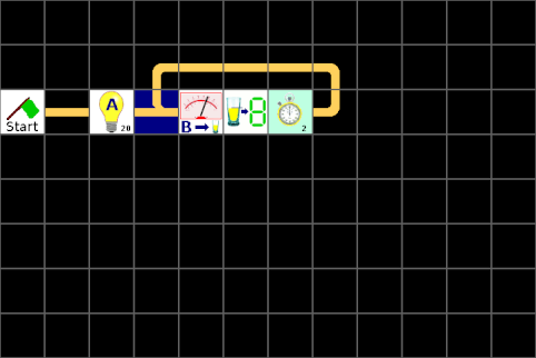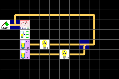 Das oben dargestellte Programm ist aber nur eine Möglichkeit, wir können zum Beispiel die Verbindungen auch zum Teil weglassen und die Elemente weiter zusammenrücken: