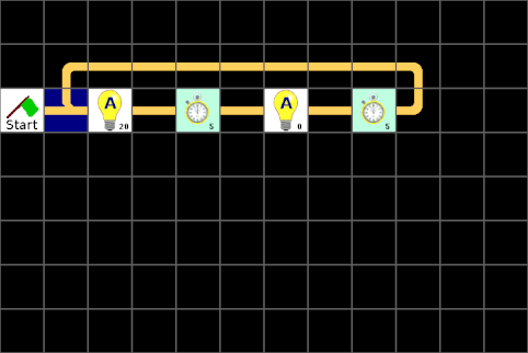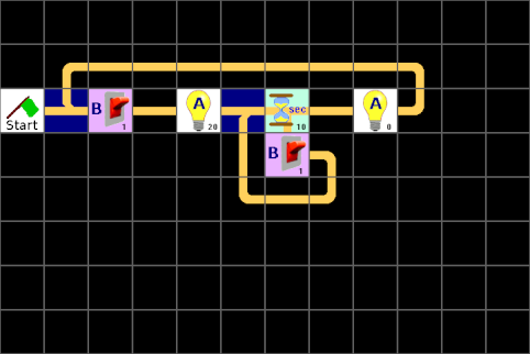 Besonders gut funktioniert das leider nicht, denn man kann die Zeit nicht verlängern, indem man während der Ein-Zeit den Taster erneut drückt. Hier kommen jetzt die unterbrechbaren Zeiten ins Spiel. Wird nämlich jetzt der Taster gedrückt während die Zeit läuft, wird das Programm an der Stelle fortgesetzt, an der die Lampe eingeschaltet wird und die Wartezeit beginnt.