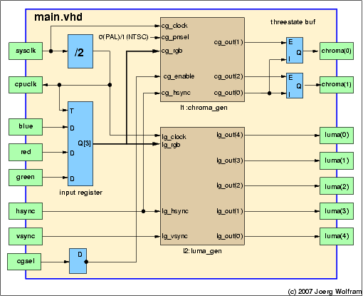 ausserhalb des CPLD's. Damit ist es auch möglich, das Chrominanzsignal tiefpasszufiltern, ohne dass die